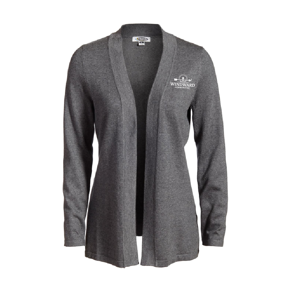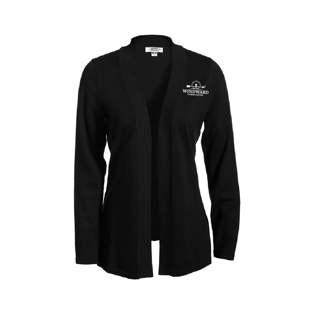Ladies' open cardigan has a flattering silhouette with a smooth and easy drape. Soft and delicate this lightweight, fine gauge sweater complements any outfit. Perfect for the office or out on the town. When embroidering this sweater, please note that chest logos can be a maximum of 3” wide.